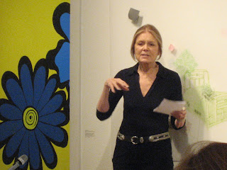 Gloria proposed (during the lecture here) that we all do something outrageous. So..the next day after the intergenerational luncheon disscussion she and Amy Richards hosted at the SVCA I decided to do something very unlike ebx. I told Gloria that she was HOT…and to my surprise she said…”you’re hot too.” And as we were chatting she mentioned how after 70..people always only discuss feminism…subtext: I think she appreciated my critique (not to mention my streaks).